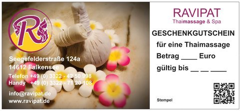 Bei diesem Massagetyp handelt es sich um eine Kombination aus Traditioneller Thaimassage und der Behandlung mit Dämpfen unterschiedlicher Heilkräuter. Durch die Massage mit dem dampfenden Herba-Sack wird duch die Wärme des Dampfes und die Heilkräuteröle die Durchblutung sowie die Muskeltätigkeit und die steifen Gelenke angeregt. Sie eignet sich zur Milderung von Schmerzen sowie zur Erfrischung der stark in Anspruch genommenen Gelenke und Muskeln. Der Heilkräutersack enthält mehr als 15 verschiedene Kräuter.